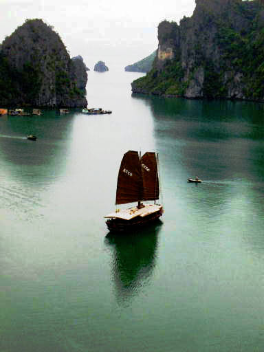 Puede que fuese la película Indochina, un documental, un programa de viajes o una postal turística. El caso es que todo el mundo tiene en su cabeza alguna imagen de la Bahía de Halong, considerada la más hermosa del mundo. Sus tres mil islotes, que surgen hacia el cielo desde la profundidad de las aguas cristalinas del Golfo de Tonkin, se extienden por una superficie de 1700 kilómetros cuadrados, albergando en muchas de estas islas grutas y playas desiertas.