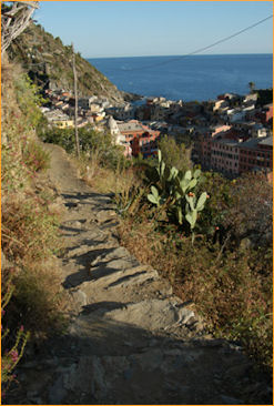 Desde Corniglia, el sendero se mantiene casi en la misma altitud durante un largo trecho, con algunos tramos más difíciles, para bajar finalmente hasta Vernazza, al que se llega tras hora y media de caminata. Éste es el lugar más admirado de Cinqueterra, con un pequeño puerto natural con forma de anfiteatro y lleno de calles estrechas y casas multicolores. En su cima se encuentra la torre de vigilancia que los genoveses construyeron después de destruir el antiguo castillo en 1182 para castigar a la gente del lugar por piratas.