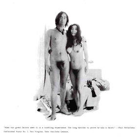 La portada y la contraportada de Unfinished Music No. 1: Two Virgins (1968) fueron censuradas en España, al igual que en otros países del mundo. En otros países, como el Reino Unido, sus cuerpos desnudos aparecieron recubiertos por un papel de estraza marrón, dejando ver sólo sus caras a través de un hueco, aunque si se retiraba el papel podían apreciarse los desnudos íntegramente. En España, por el contrario, se editó con una carátula única, en la que sobre un fondo marrón aparecían sólo los rostros de ambos, sin que existiera posibilidad de retirar funda alguna y apreciar el diseño original del álbum con los cuerpos desnudos.