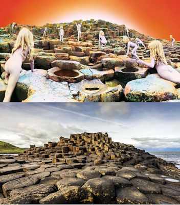 Plant propuso las formaciones rocosas de la Isla de Staffa en Escocia aunque, como era prácticamente inaccesible, se optó por a llevar todo el equipo a una zona similar denominada la Calzada del Gigante (Giant’s Causeway), formada por 40.000 columnas de basalto provenientes del enfriamiento relativamente rápido de la lava de un volcán hace unos 60 millones de años, que se encuentra situada unos 3 km al norte de Bushmills, en el Condado de Antrim (Irlanda del Norte). La rocambolesca historia de la realización de las fotos y su posterior tratamiento da para otra buena historia, y el lugar, desde que apareció en la portada del disco, se ha convertido en el más visitado del país de Van Morrison. No todo el mérito es de Led Zeppelin y su disco, claro, aunque simbolizando una ‘fuente de poder mágico’, todo podría ser.