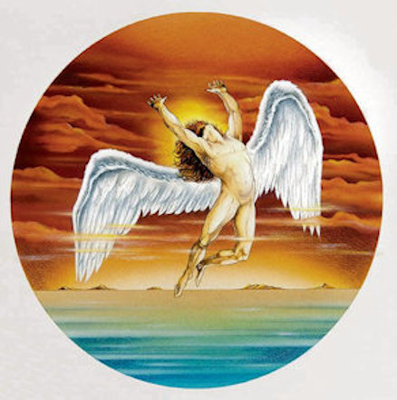 SWAN SONG: El diseñador gráfico americano Joe Petagno se puso en contacto con Hipgnosis, la compañía que se estaba encargando de las portadas de Led Zeppelin, ofreciéndoles varias ilustraciones. Storm Thorgerson (de Hipgnosis) y el grupo le pidieron que hiciese algo a partir de una pintura del artista norteamericano William Rimmer, llamada El ocaso (1989), en la que se representa a un Ícaro libre alzando los brazos los cielos, y con el que pretendían simbolizar la independencia de la banda de Atlantic Records. Más tarde Petagno diseñaría Snaggletooth, el logo de Motörhead.