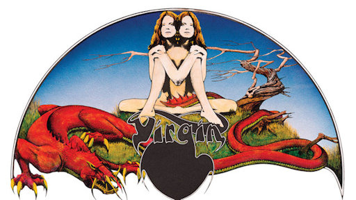VIRGIN: El logo original de Virgin fue diseñado por Roger Dean. Conocido a menudo como ‘Géminis’, presentaba a dos gemelas siamesas —o una mujer joven desnuda en una imagen de espejo— sentadas junto a un árbol en una colina, con un dragón de larga cola a sus pies. El diseño se organizó adecuadamente en semicírculo para encajar correctamente en el área central de la etiqueta de un vinilo. Con ello representaba la virginidad del nombre del sello, aunque realmente se habían llamado así porque los fundadores eran nuevos en el negocio de la música. Cuando Virgin fichó a los Sex Pistols, tuvieron que diseñar otro logo: a Johnny Rotten no le gustaba la idea de que apareciera un símbolo de “aspecto hippie” en los discos de la banda.