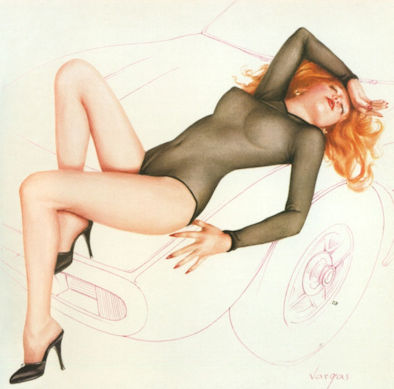 Con las fotografías tomadas por Robinson a las dos modelos, Vargas decidió mantener el pelo rojo y la pose de Nancy Beth combinándolos con el cuerpo y la cara de Candy Moore recostada sobre el automóvil, contrastando el color y el detalle de la pin-up con finos trazos en blanco y negro del vehículo. En la parte inferior derecha dejó también su acostumbrada firma.