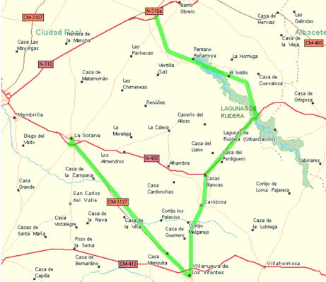 La Etapa: La Solana (786 m.) – Villanueva de los Infantes (840 m.) – Carrizosa (824 m.) – Ruidera (821 m.)– Castillo de Peñarroya (920 m.)– Argamasilla de Alba (671 m.)