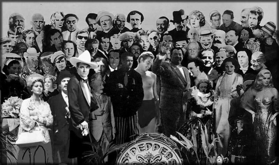 Así, la banda Sgt. Pepper’s, vestida por el diseñador mexicano Manuel Cuevas, aparecería rodeada de un collage de rostros célebres, como si fuesen contemplados por un grupo de seguidores formado por parte de los héroes de The Beatles y otra gente notable. Entre esos personajes estarían Aleister Crowley, Mae West, Lenny Bruce, Stockhausen, Edgar Allen Poe, Fred Astaire, Bob Dylan, Aldous Huxley, Dylan Thomas, Dion DiMucci, Tony Curtis, William Burroughs, Marilyn Monroe, Stan Laurel, Oliver Hardy, Karl Marx, H.G. Wells, Lawrence de Arabia, Stuart Sutcliffe, Marlon Brando, Oscar Wilde, Tyrone Power, el Dr. Livingstone, Johnny Weismuller, Bernard Shaw, Graham Bell, Lewis Carroll, las figuras en cera de The Beatles en sus primeros tiempos prestadas por el Museo de Cera de Madame Tussaud, Albert Einstein, Marlene Dietrich o Shirley Temple.