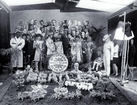Con todos los que estaban trabajando en la sesión y distintos invitados fumando hachís, el humo se iba adueñando del lugar, así que hubo que pedirles que saliesen. Una vez controlado el caos, empezaron a disparar la cámara. Bajo la dirección de Cooper, fue su ayudante Nigel Hartnup quien tomó las fotos. Subido en una escalera, con la cabeza contra el techo e intentando mirar desde arriba a través del disparador de la cámara, Hartnup iba dando las instrucciones (“¡Echad atrás a Aleister Crowley, moved a Bob Dylan a la izquierda, adelantad un poco a Marilyn!”) para evitar que se viesen los reflejos en las figuras.